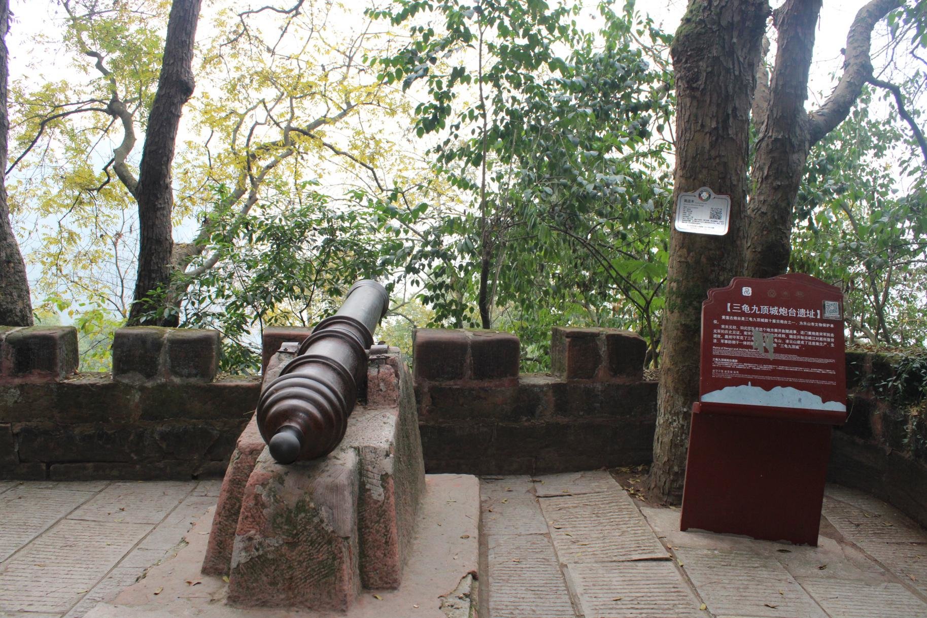 三龟九顶城炮台在宋元战争中的嘉定之战形成了犄角之势,控制岷江水路,起到了军事要隘的作用。