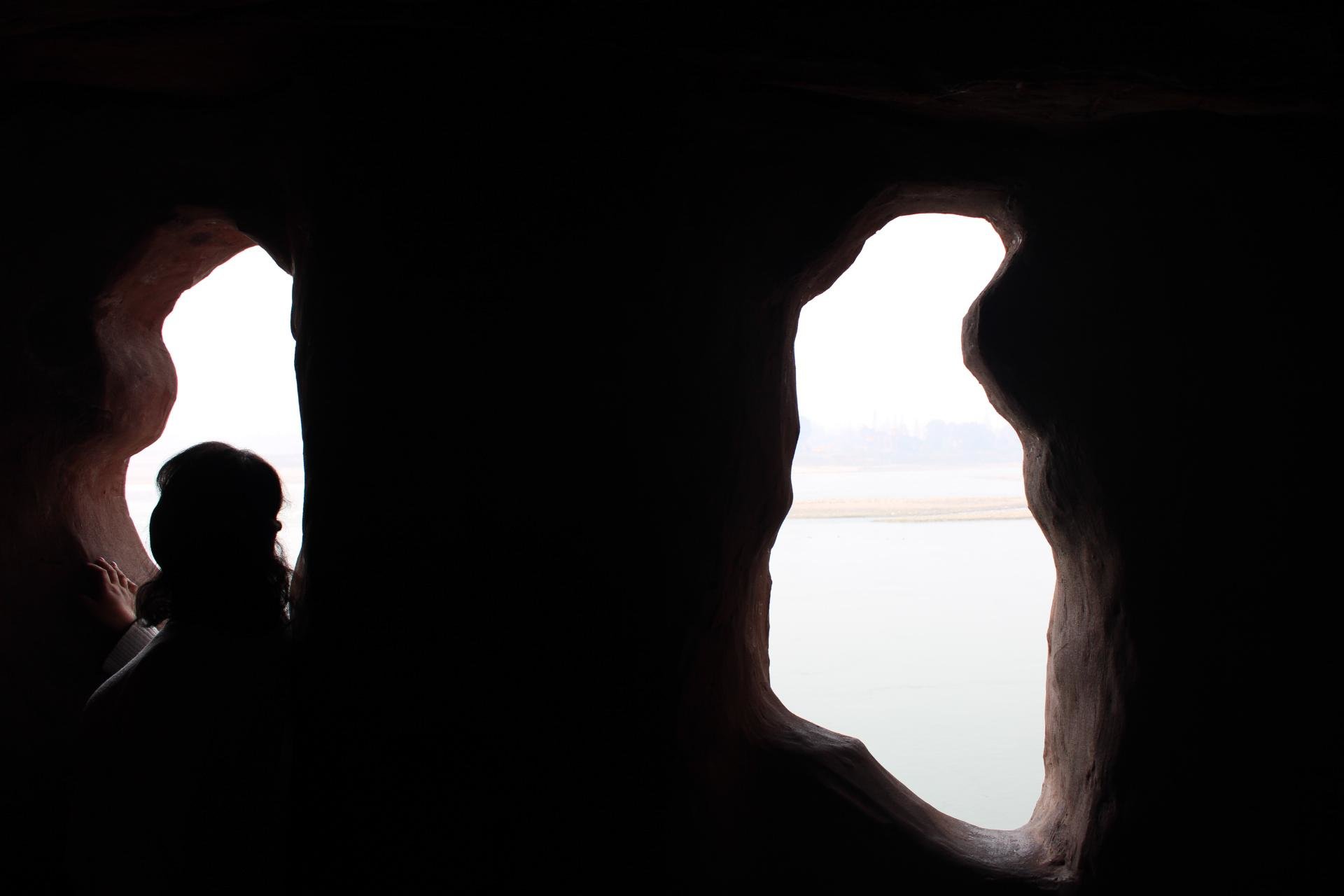 岩壁通道之中有几处可以看窗景,有游客喜欢在这些地方拍照。