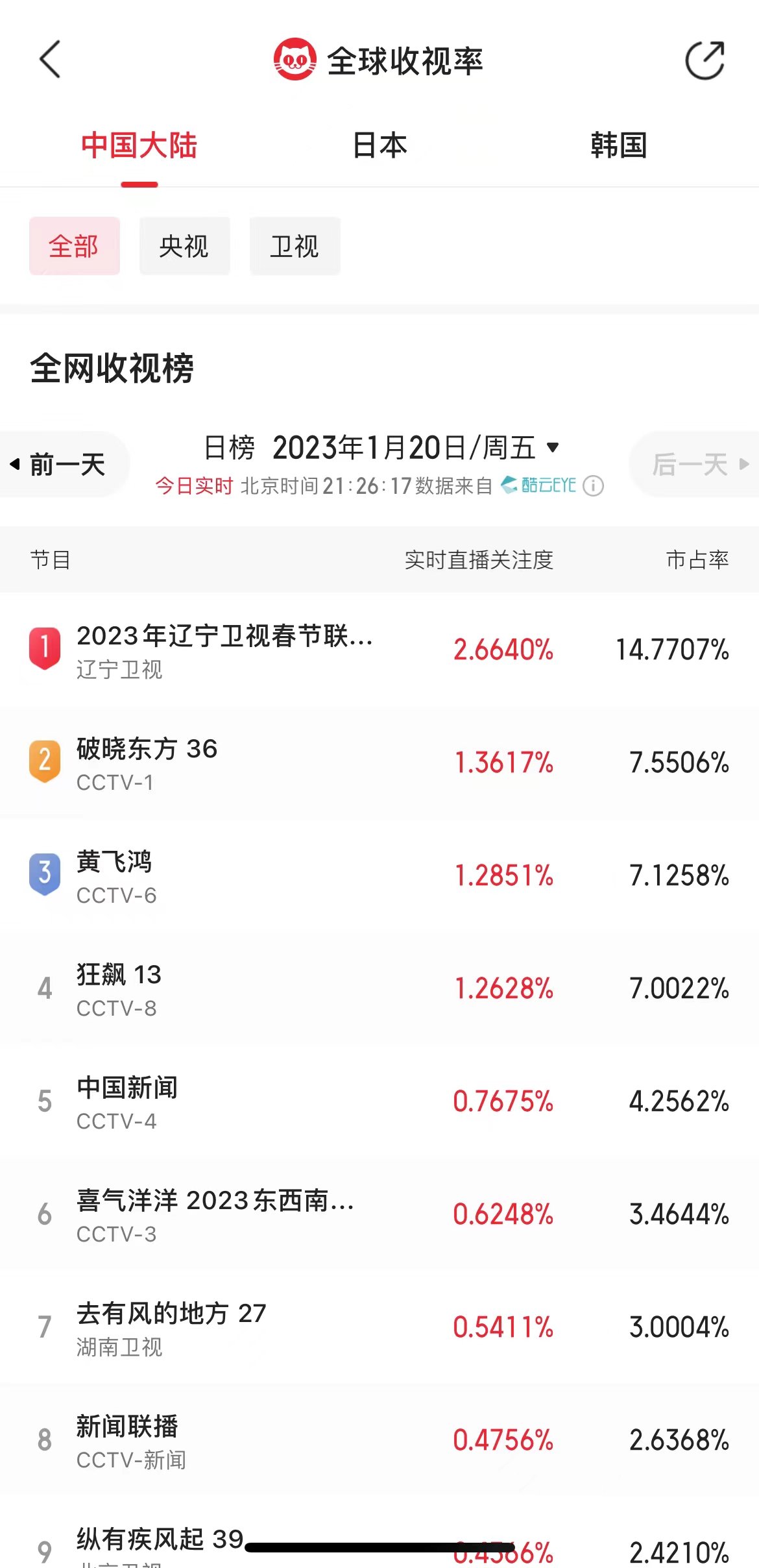 辽宁卫视2023年春晚,在1月20日晚上在辽宁卫视晚间时段播出,不出意外,辽宁卫视成功夺得收视冠军。