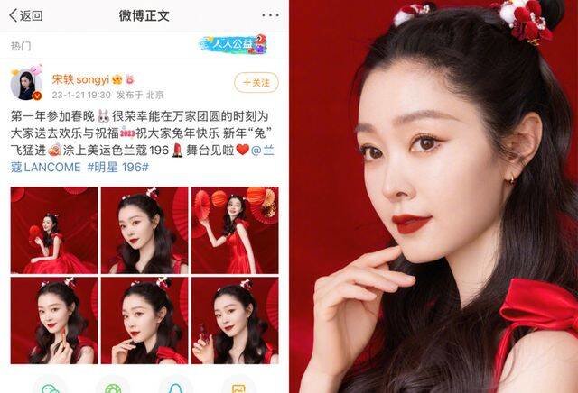 她本人发送微博的时候,还贴心地附赠了自己口红的品牌信息。