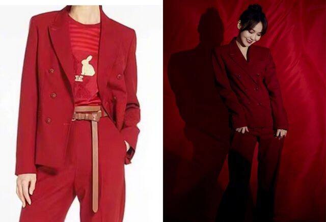 第一次上春晚的张佳宁,也选择了Max Mara家的西服套装组合。