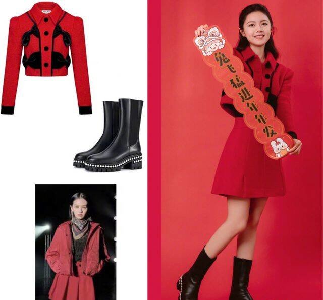 热情的正红色遇上同样鲜亮无比的大亮片,整个人都很有中国年画娃娃的饱满感。
