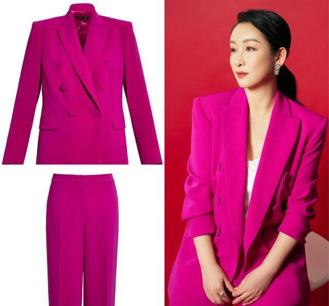 另一身全桃红色的西服套装,我个人更偏爱一些。