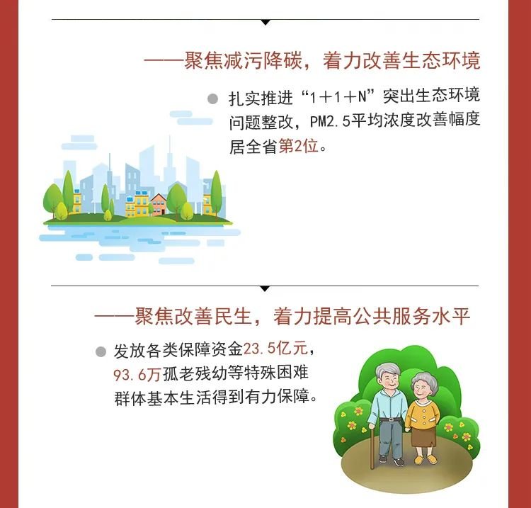 在省委、省政府和市委的坚强领导下,全市上下坚持以习近平新时代中国特色社会主义思想为指导,深入贯彻落实党的二十大精神和习近平总书记系列重要讲话指示批示精神,衷心拥护“两个确立”、忠诚践行“两个维护”,高效统筹疫情防控和经济社会发展,统筹发展和安全,积极应对超预期因素冲击,扎实推进三次产业高质量协同发展,认真落实“两化一推”工作部署,“三地一区一城”建设迈出坚实步伐。