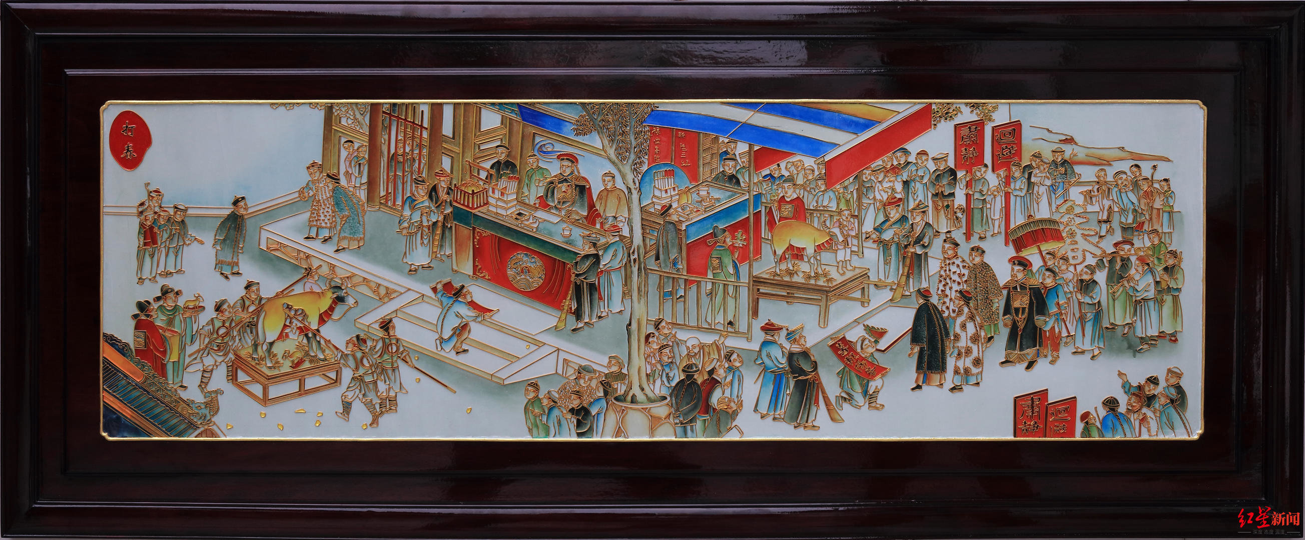 据介绍,5年前,叶华开始以《迎春图》为蓝本,采用金丝掐丝技艺,制作金丝年画《迎春图》,从起稿、勾线、掐丝、上彩、装裱等环节一丝不苟地进行,最终历时5年多才完成金丝年画《迎春图》长卷。