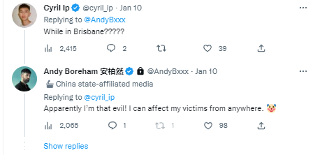 因为这则推文下方显示安柏然的定位在澳大利亚昆士兰州布里斯班,有网友当时就吐槽:“即便在布里斯班(也被列为‘罪犯’了)?”对此他自嘲称,“显然我就是那个魔鬼!我在哪里都能影响我的受害者。”↓