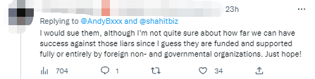 不知是否是因为被安柏然的一系列推文惹怒,北京时间11日上午,“新疆受害者数据库”推特账号发文提问,“如果一名居住在中国的外籍宣传者公然称一位目击者是‘骗子’,我们会正式且永久地记录下这一点,该宣传者威胁要起诉我们诽谤:1) 他能成功吗?2) 目击证人能以诽谤罪起诉他吗?欢迎法律专家(解答)。”