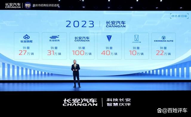 现代化建设聚焦高质量发展,强调依靠创新构建新发展格局,长安汽车稳中求进、踔厉奋发、勇毅前行。在大会上,长安汽车总裁王俊分享了2023年长安汽车总体目标:产销突破280万辆,确保规模增长高于行业10个百分点以上,长安品牌乘用车目标100万辆,深蓝品牌实现40万辆交付任务,阿维塔向10万辆冲刺。他强调,长安汽车今年将全力冲击新目标、投放新产品、量产新技术、发力新营销、韧性新供应、抢占新赛道,发力六大行动全速前进。预告了长安汽车今年将陆续投放深蓝S7、C236、览拓者EV、阿维塔E12等重磅产品。同时,长安汽车规划的C928、C857、D857、C318、C390、B390、CD701、CD570、C916、E15、E16等全新产品早已蓄势待发。