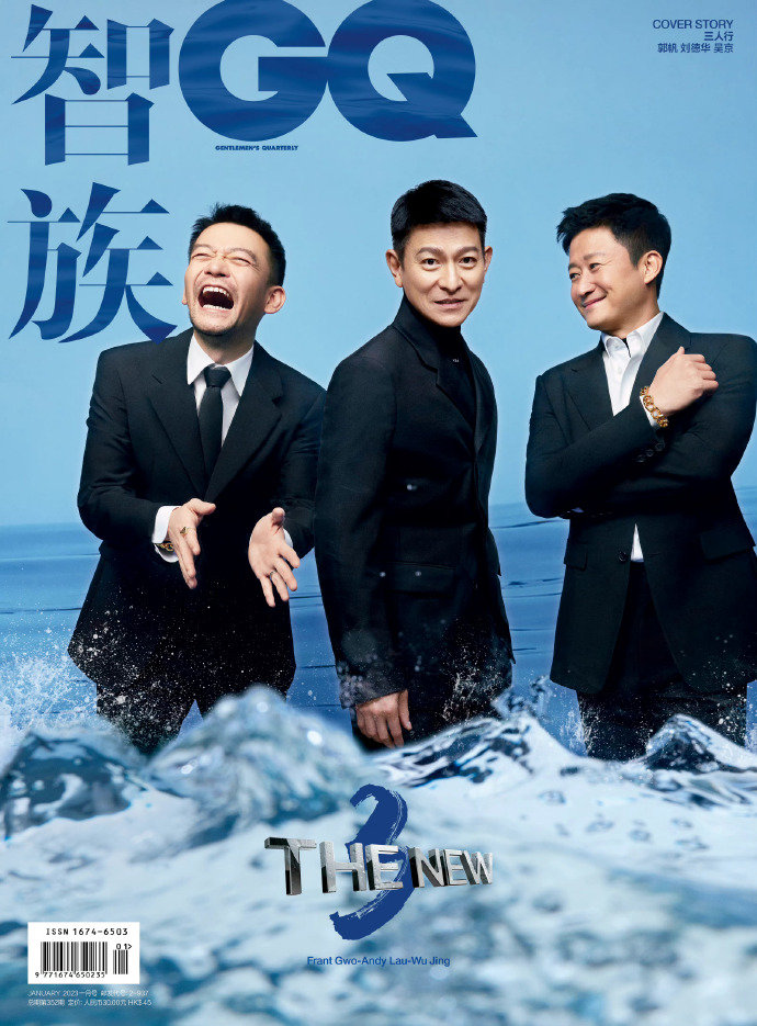 GQ China 1月开年刊封面人物,“三人行”流浪地球2主演刘德华、吴京和导演郭帆携手亮相。