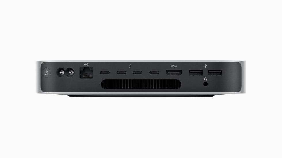 搭载 M2 Pro 的 Mac mini 端口展示。