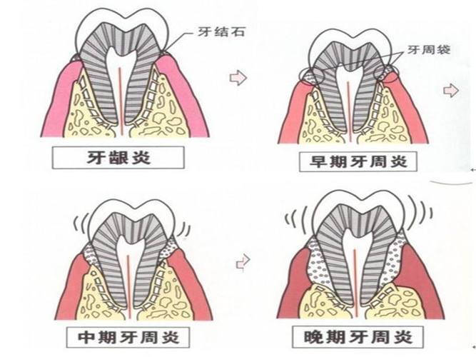 食物残渣不及时清理、口腔卫生做不好往往容易有牙结石沉积,如果还不能定期洗牙,长久下来,牙齿与牙龈之间就会因为聚集牙菌斑和牙石造成牙周病。