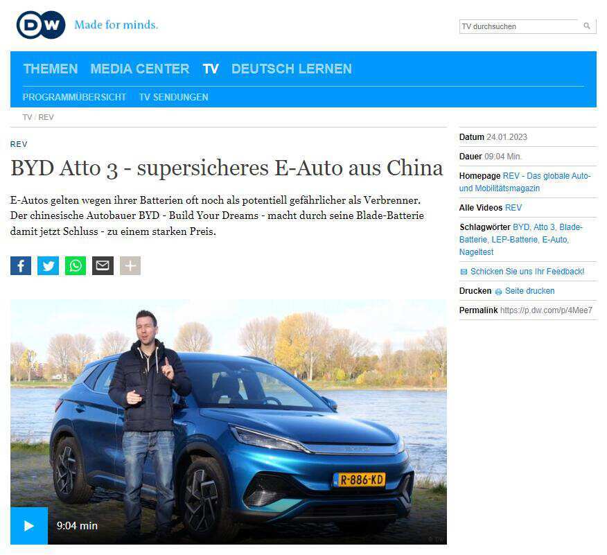 德国主流电视台DW、德国知名汽车媒体Auto Motor und Sport等对比亚迪Atto3(元plus)进行了详细测试。车评人测试完整车给出好评的同时,测试视频在海外媒体平台上传播之后,还圈粉了一众海外网友!