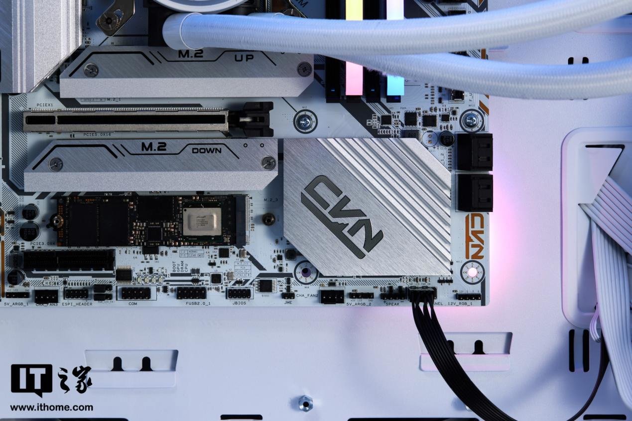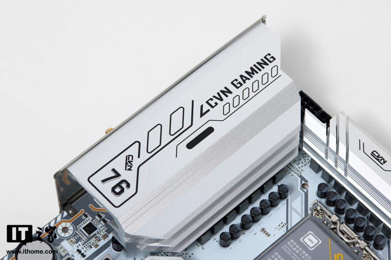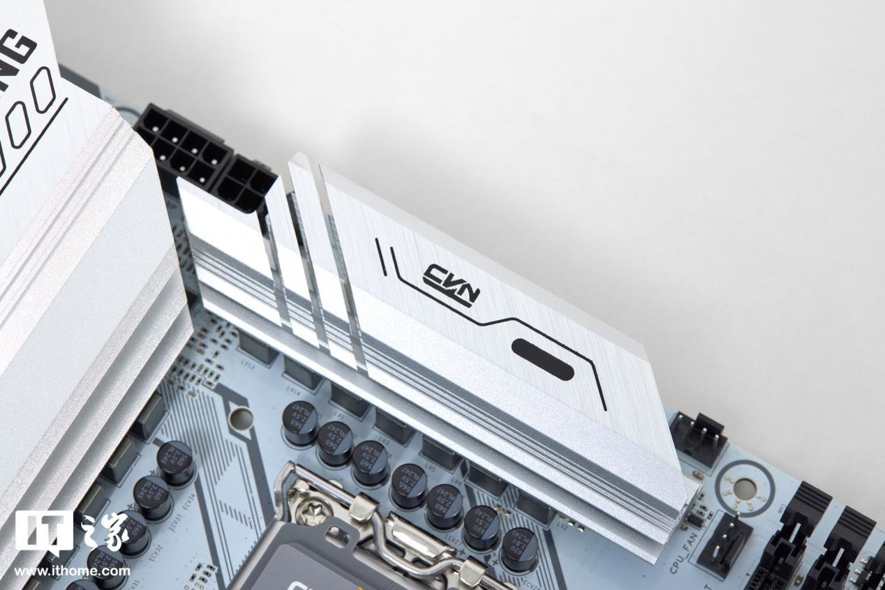 我们搭配的内存是七彩虹的 CVN 6000MHz DDR5 灯条,配合七彩虹主板的灯光同步功能,看起来相当美观,银色的散热马甲也和银色的主板很搭。