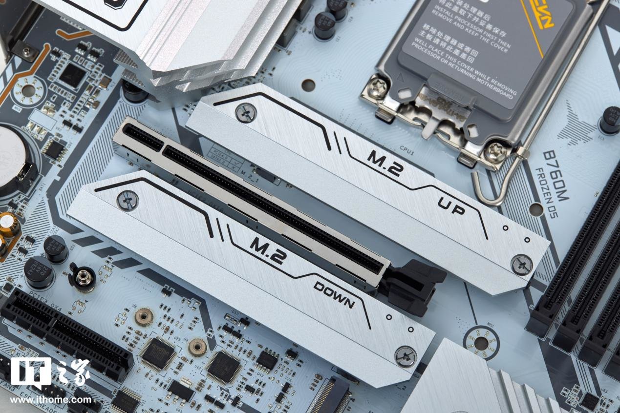 作为一款新世代的主板,七彩虹 CVN B760M FROZEN WIFI D5 V20 主板也支持 PCIe 4.0 的 M.2 硬盘,并且三个 M.2 插槽均支持 PCIE 4.0*4 通道,可以适配当下的高速硬盘。其中前两个 M.2 提供了散热装甲,为高性能硬盘提供散热保障。
