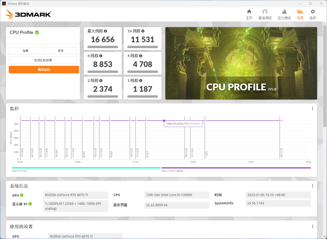 在 3DMark CPU 测试中,可以达到单核 1187,多核 16656 分的成绩,基本释放出了全部性能,可见主板的供电非常稳定。