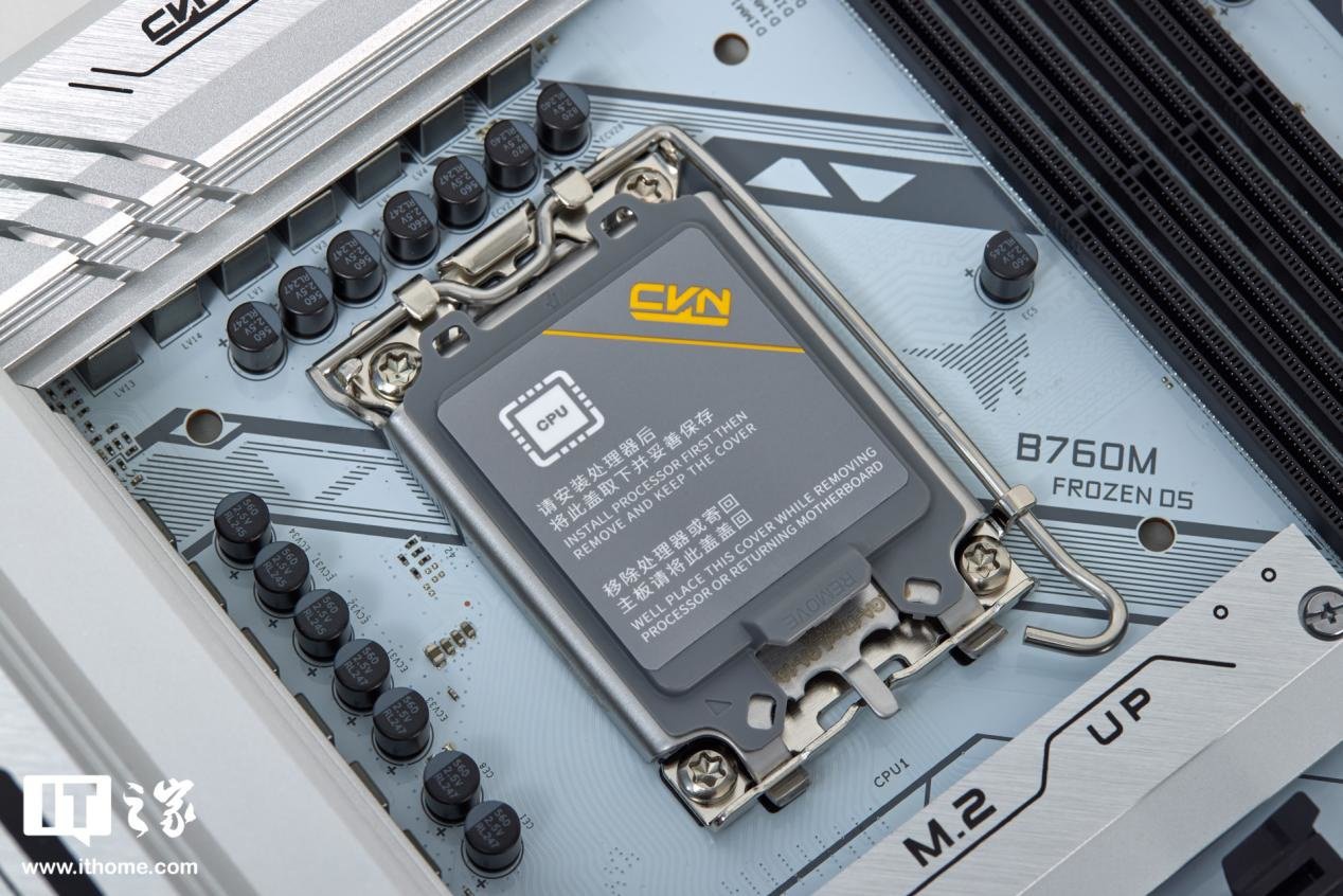作为核心接口的 CPU 接口部分,七彩虹 CVN B760M FROZEN WIFI D5 V20 采用全新的 LGA1700 接口,全面兼容 12 代与 13 代酷睿。