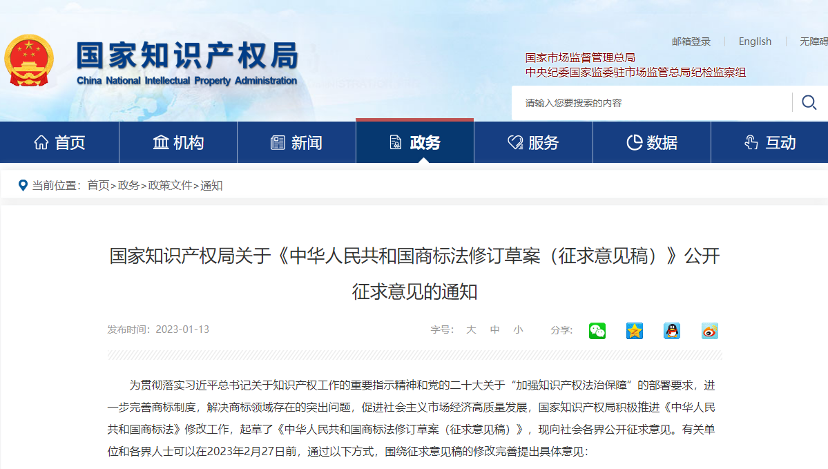 近日,十象知产注意到,国家知识产权局在官网发布关于《中华人民共和国商标法修订草案(征求意见稿)》公开征求意见的通知。相对于前面四次在原有框架上的“修修补补”,此次修改动作力度相当大,其中强化商标使用义务,打击商标恶意注册,更是此次修订的重中之重。