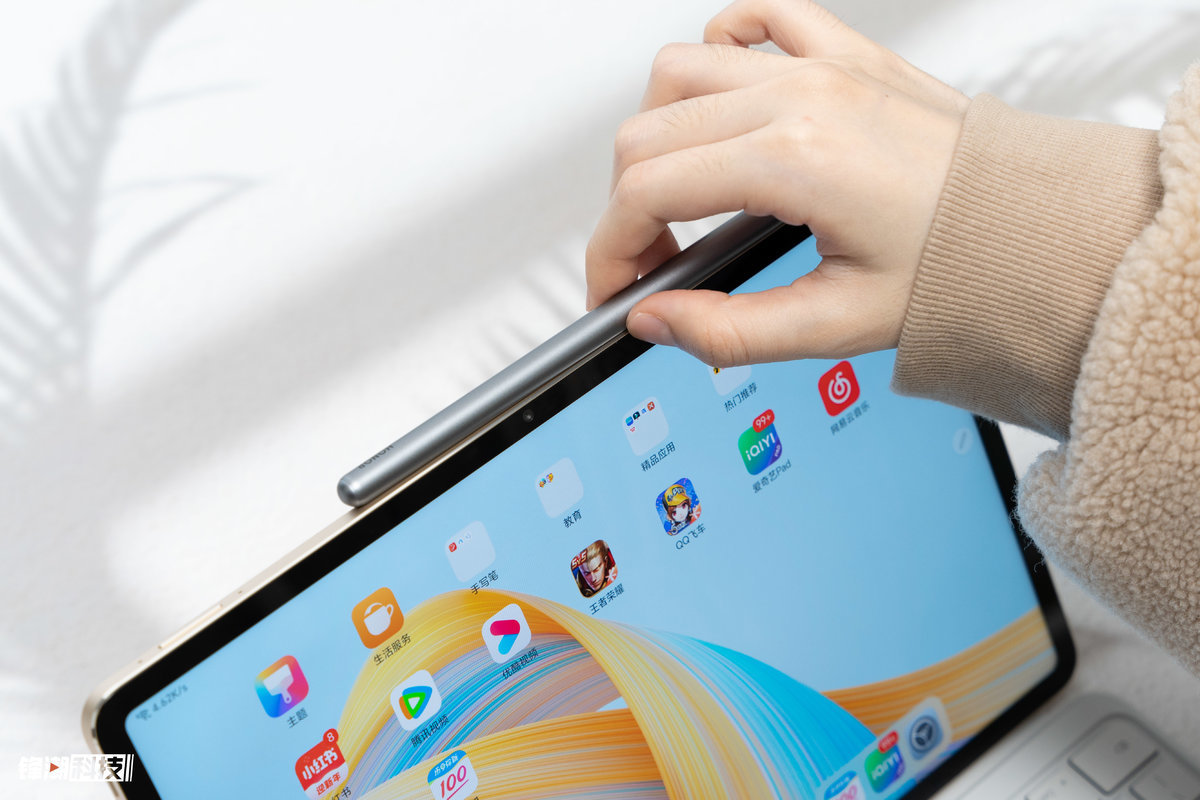 随着荣耀平板V8 Pro 一起推出的还有 HONOR Magic Pencil 3 手写笔,笔身光滑并有哑光质感,握感舒适。能够提供真实的书写质感,笔身还有磁力吸附的充电功能,平时不用的时候直接吸附在平板上,可以起到收纳和保持续航的作用。