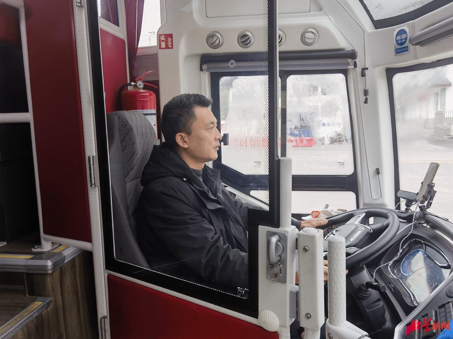 每次发车前,杨洪都要亲自检查车辆状态,这是作为一名经历了15年“春运”的长途客运司机自发养成的习惯。杨洪今年46岁,是广东—南充线路的一名长途客运司机,今年也是杨洪自己的第16个“春运”。