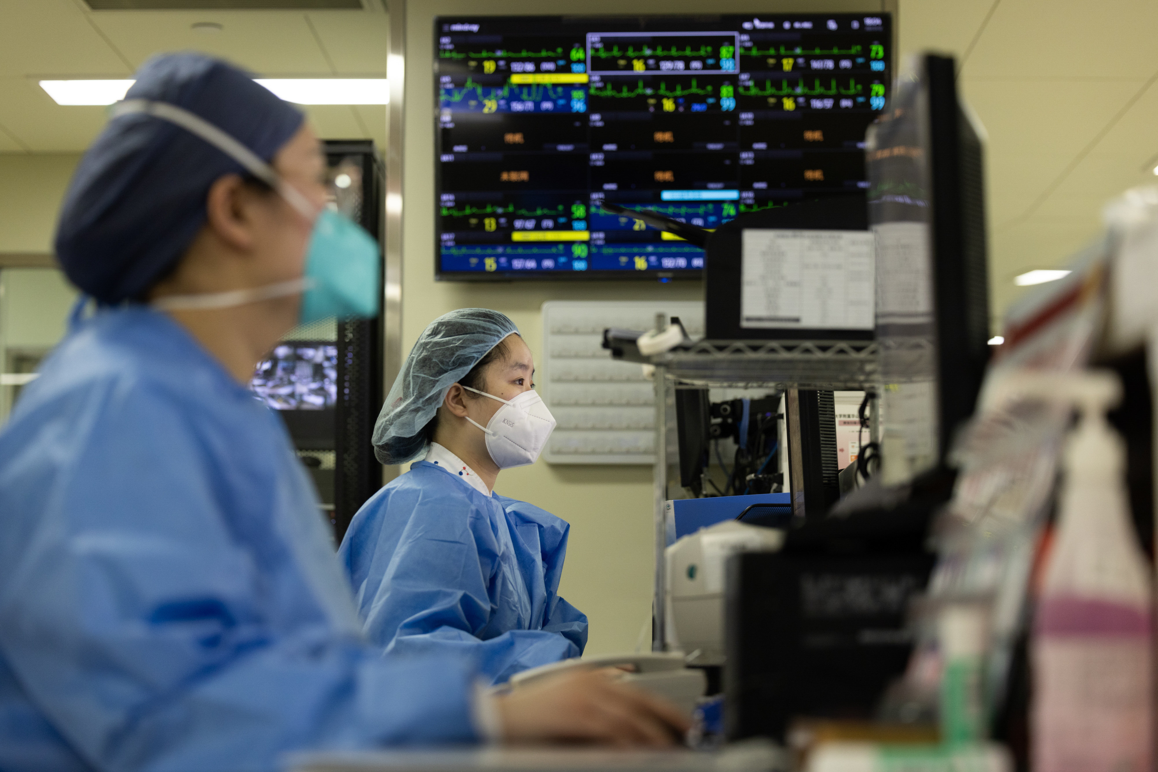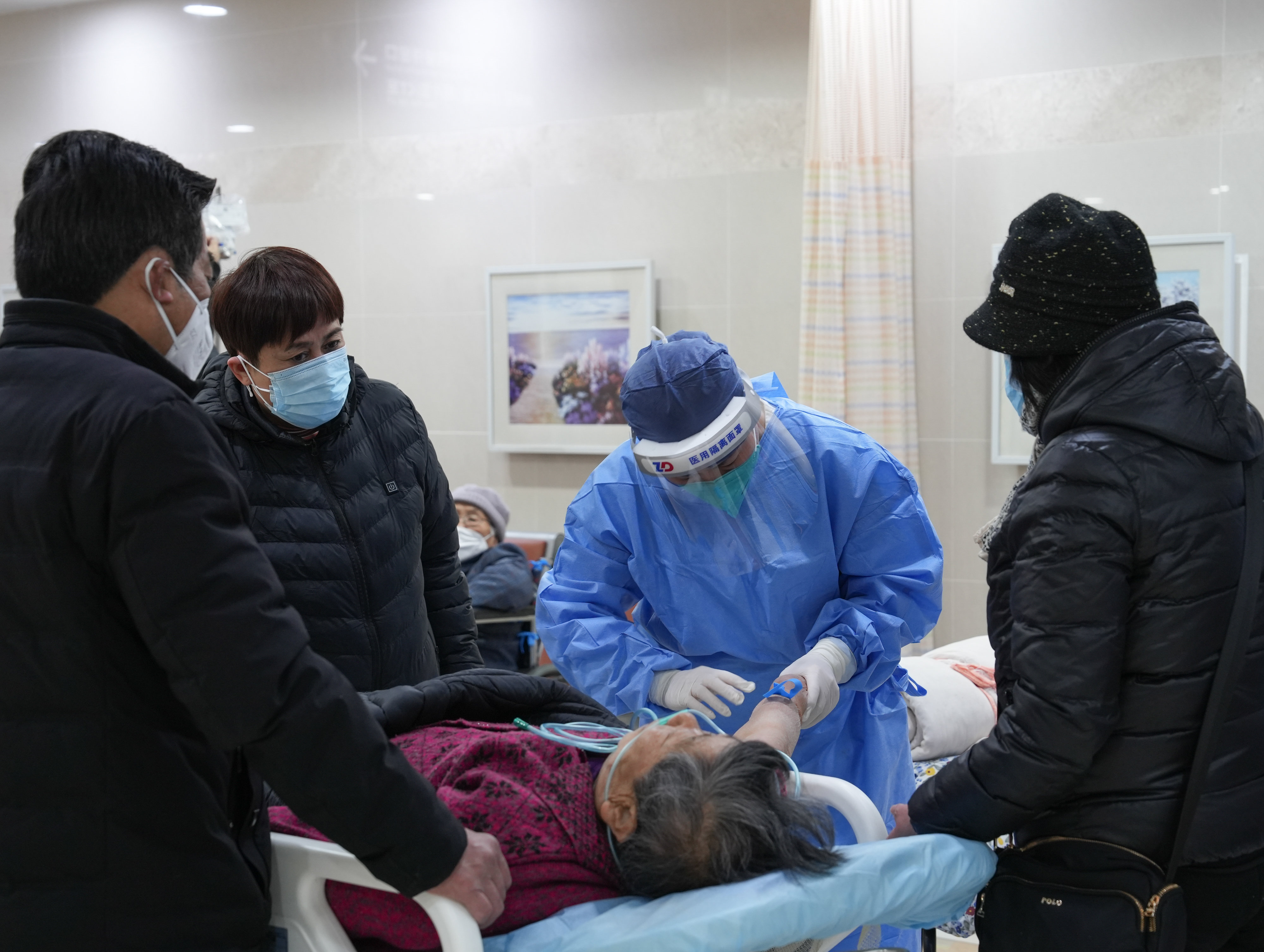 1月4日至1月12日,从凌晨到深夜,记者接续式在复旦大学附属华山医院虹桥院区蹲点观察采访,记录下抢救室、输液室、肺炎病房、重症监护室的救治情况。