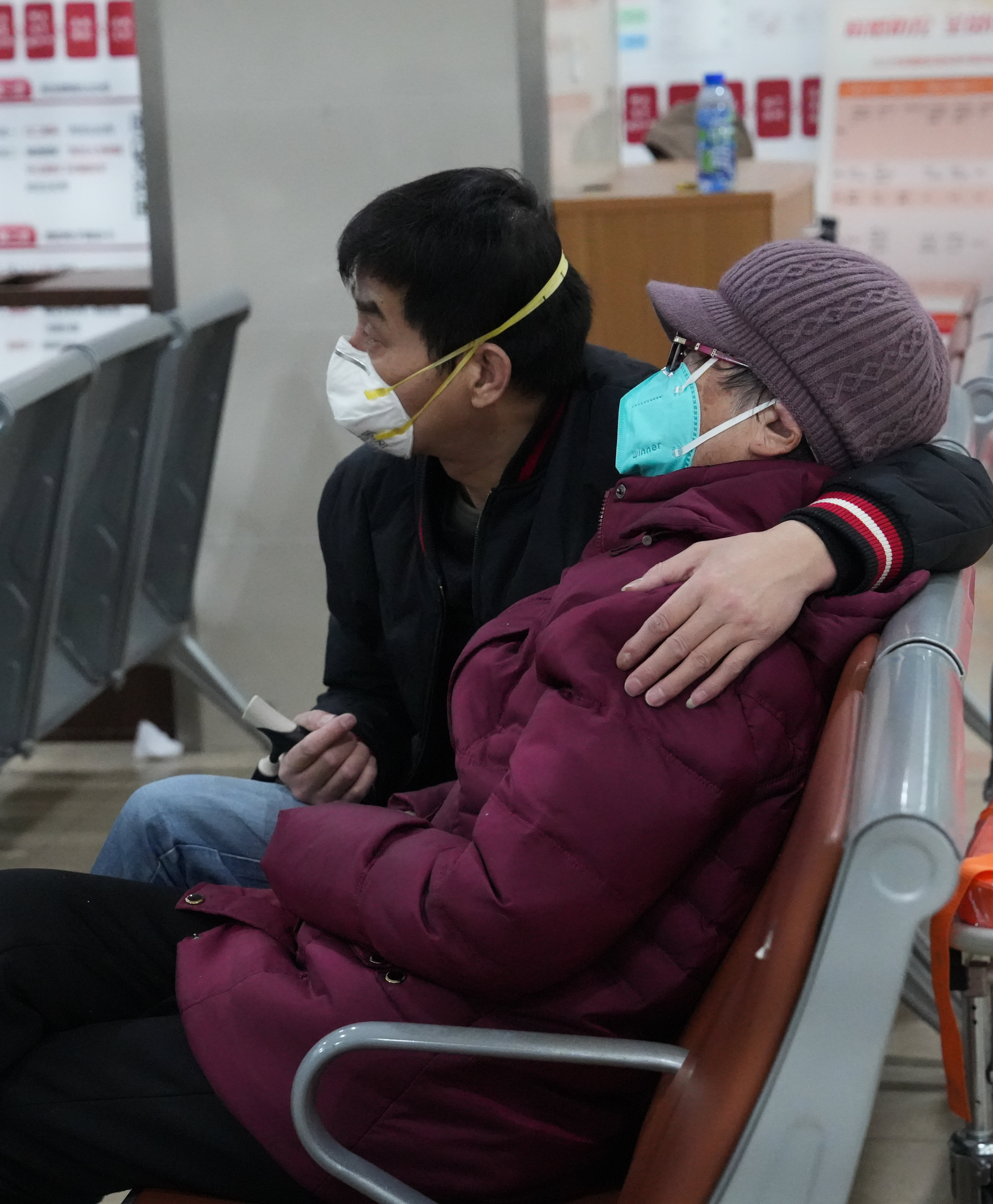 1月8日,患者和家属在复旦大学附属华山医院虹桥院区急诊大厅等待叫号。新华社记者 王翔 摄