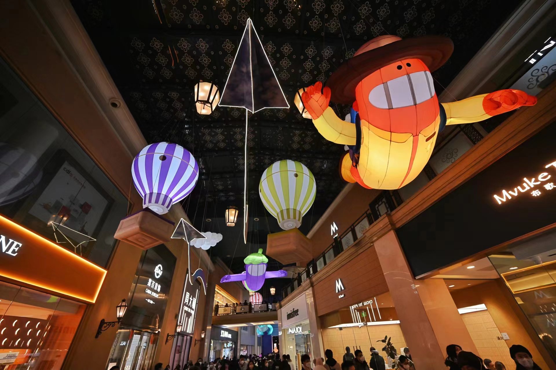 新华社北京1月14日电(记者孙蕾 李春宇)新春脚步临近,北京燕莎友谊商城、蓝色港湾、颐堤港、望京新世界百货等多个商圈打造“兔年”促消费活动,在商场内外搭建摆放中国结、灯笼、春联等景观,让消费者感受到热情洋溢的节日气氛。