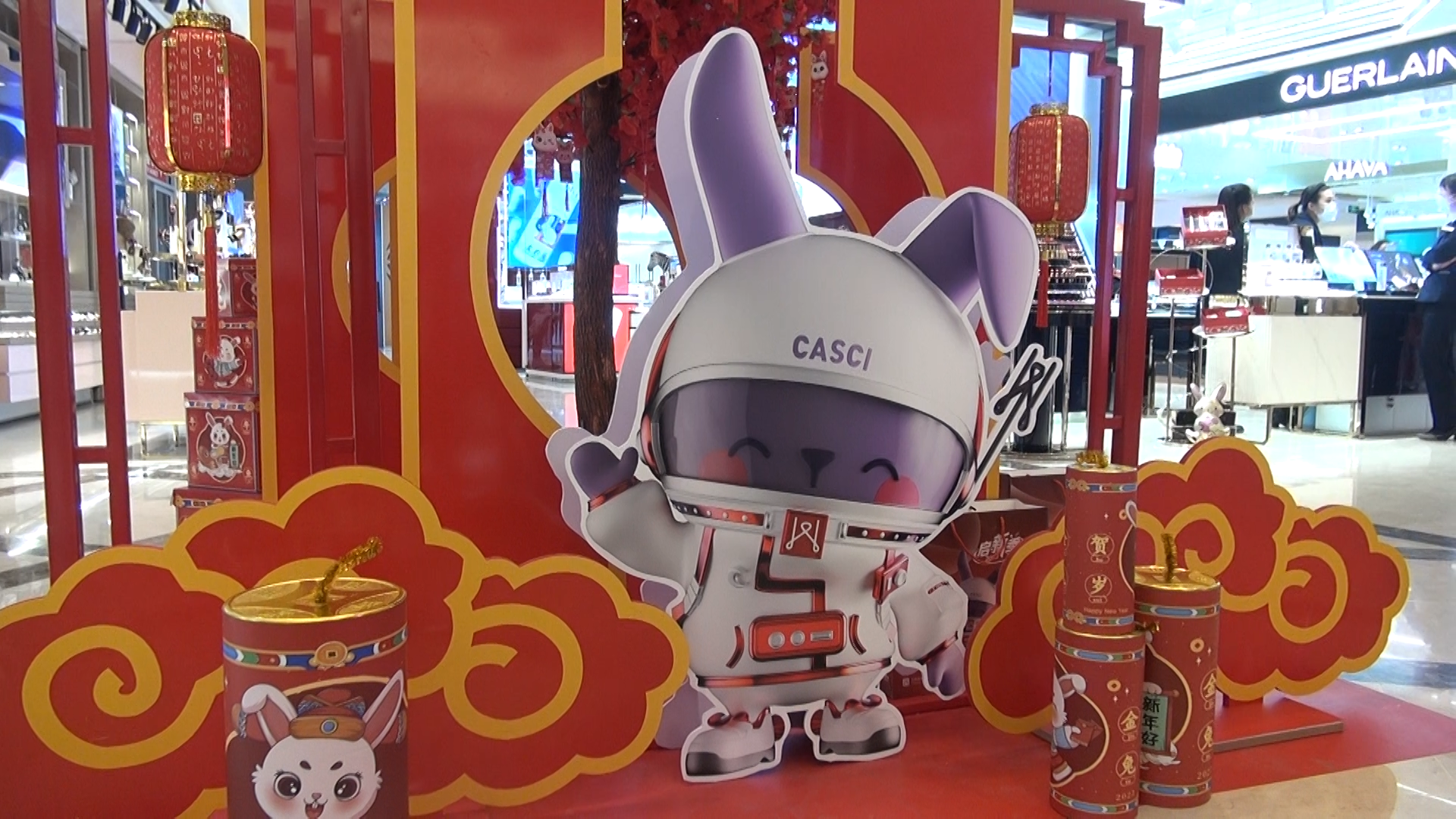燕莎友谊商城副总经理和阳介绍,集团今年联合中国航天文创推出“玉小兔”IP形象,门店围绕核心元素,营造整体的喜庆氛围,推出“启新季——好彩年货节”活动。