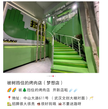 其实早在前几个月开始,“被树挡住的烤肉店”的老板,就在小红书上发了几条新店的预告。