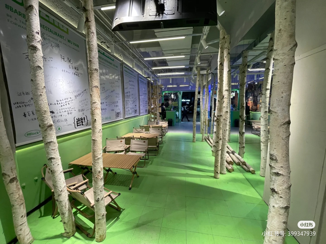 从流出的图片可以看到,新店以绿色为主色调,走的是小清新路线。