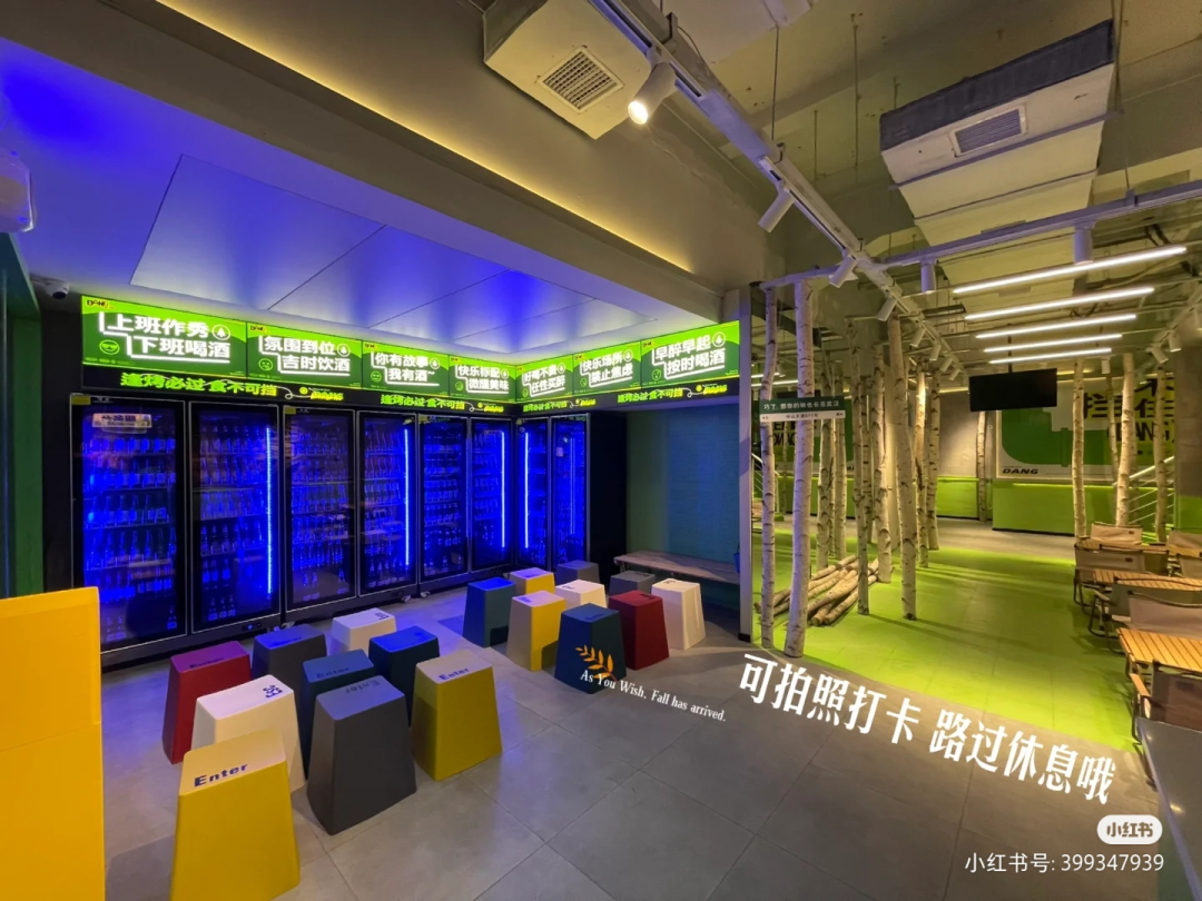 看看2.0版本的门店设计,可以说完美融入1.0版本的设计精髓:生活要想过得去,身上总得带点绿。