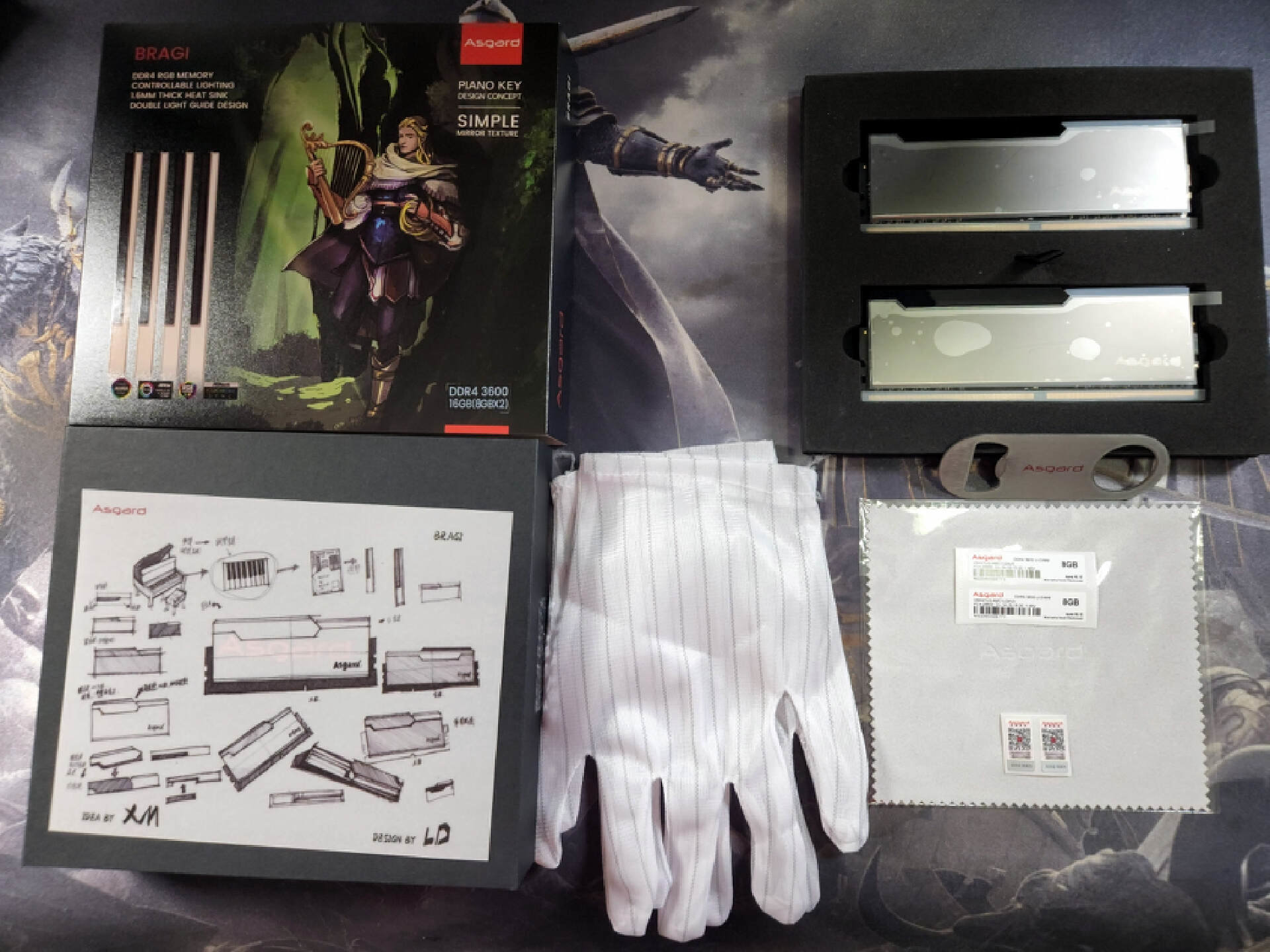这款阿斯加特出品的32GB(16Gx2)的博拉琪套装内存频率为DDR5 6800MHz,采用轻奢礼盒包装,自用、馈赠两相宜,送男友也是个不错的选择。台式机内存机,搭配镜面RGB灯条采用海力士颗粒,注意,这里是镜面!高端才有的镜面,注意,这里是海力士Adie颗粒,真可谓是颜值与性能兼备,先来看出厂包装,镜片有贴膜防护,除了擦镜布,居然还配了手套,这镜面来之不易,为了更好的视觉效果,戴手套安装也不为过。