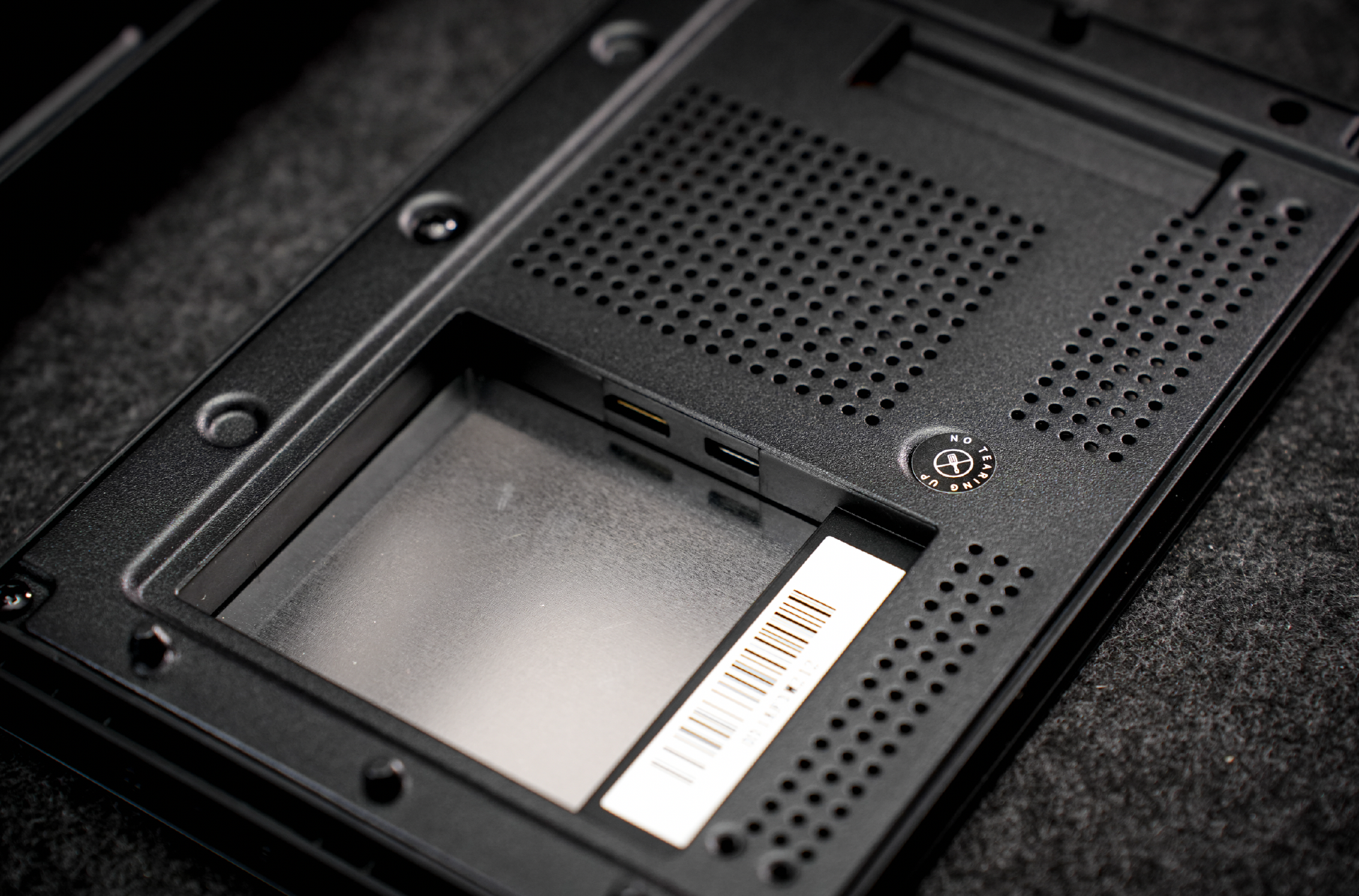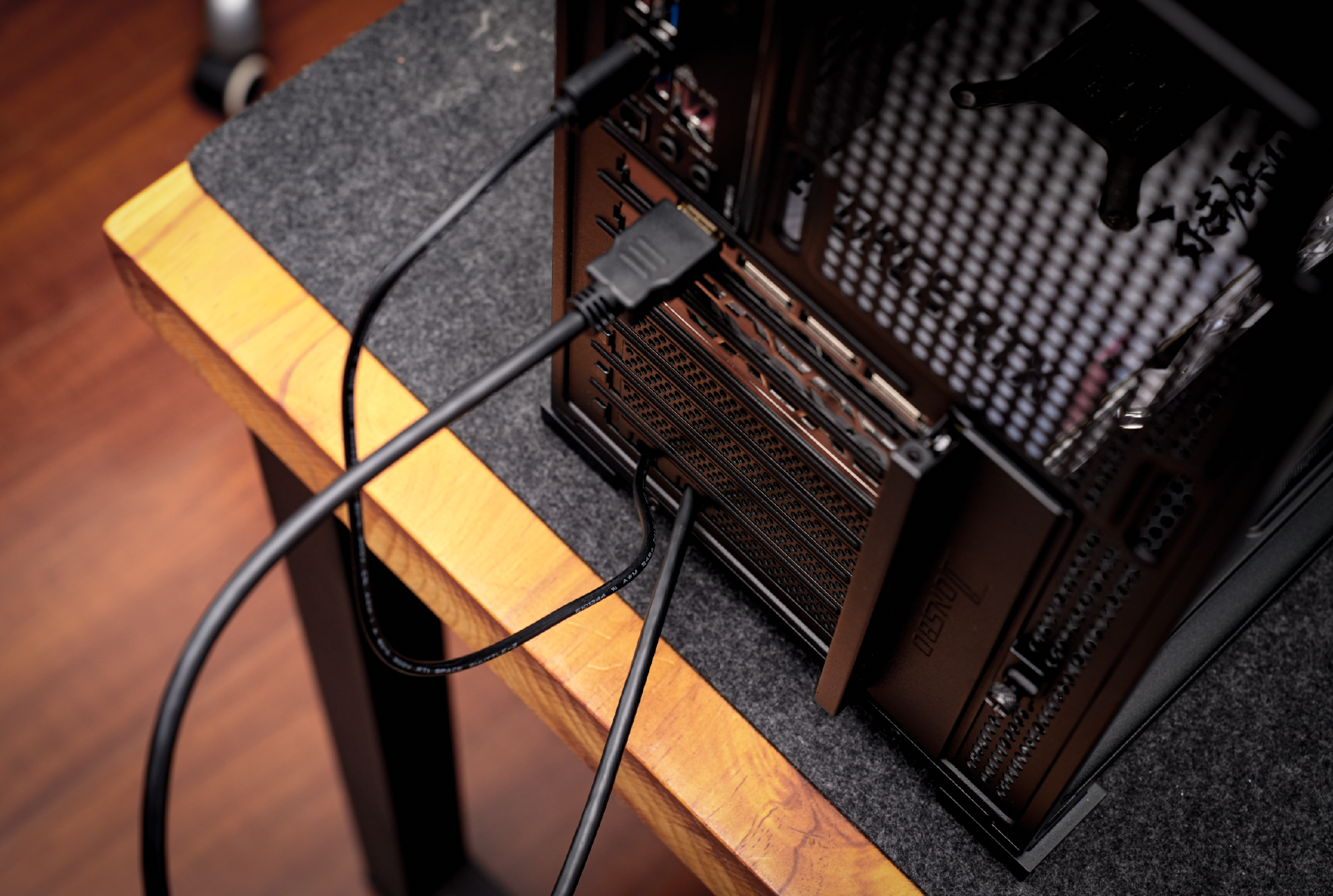 后方为副屏进行视频输入和电源的线材底部有对应的挡板,固定好后也可以进行一定的整理收纳,这样会美观一些。