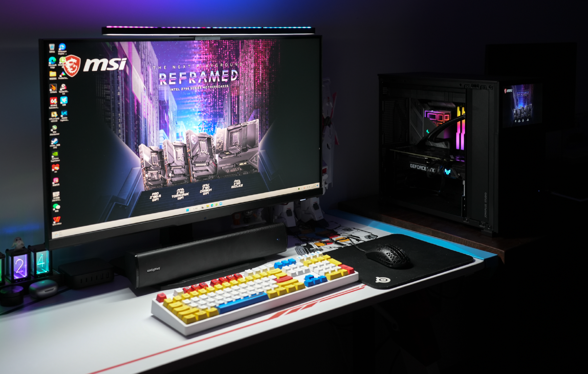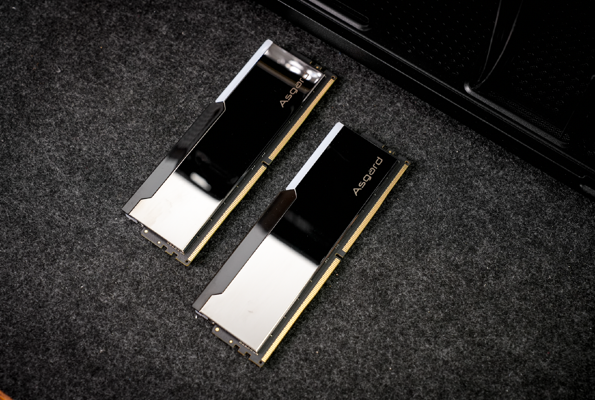 内存我用的是阿斯加特博拉琪DDR5 6800MHz,该内存的整体设计很有趣。其散热马甲采用了镜面设计,而导光带的设计则是源于钢琴的黑白琴键,组合起来视觉观感很不错。