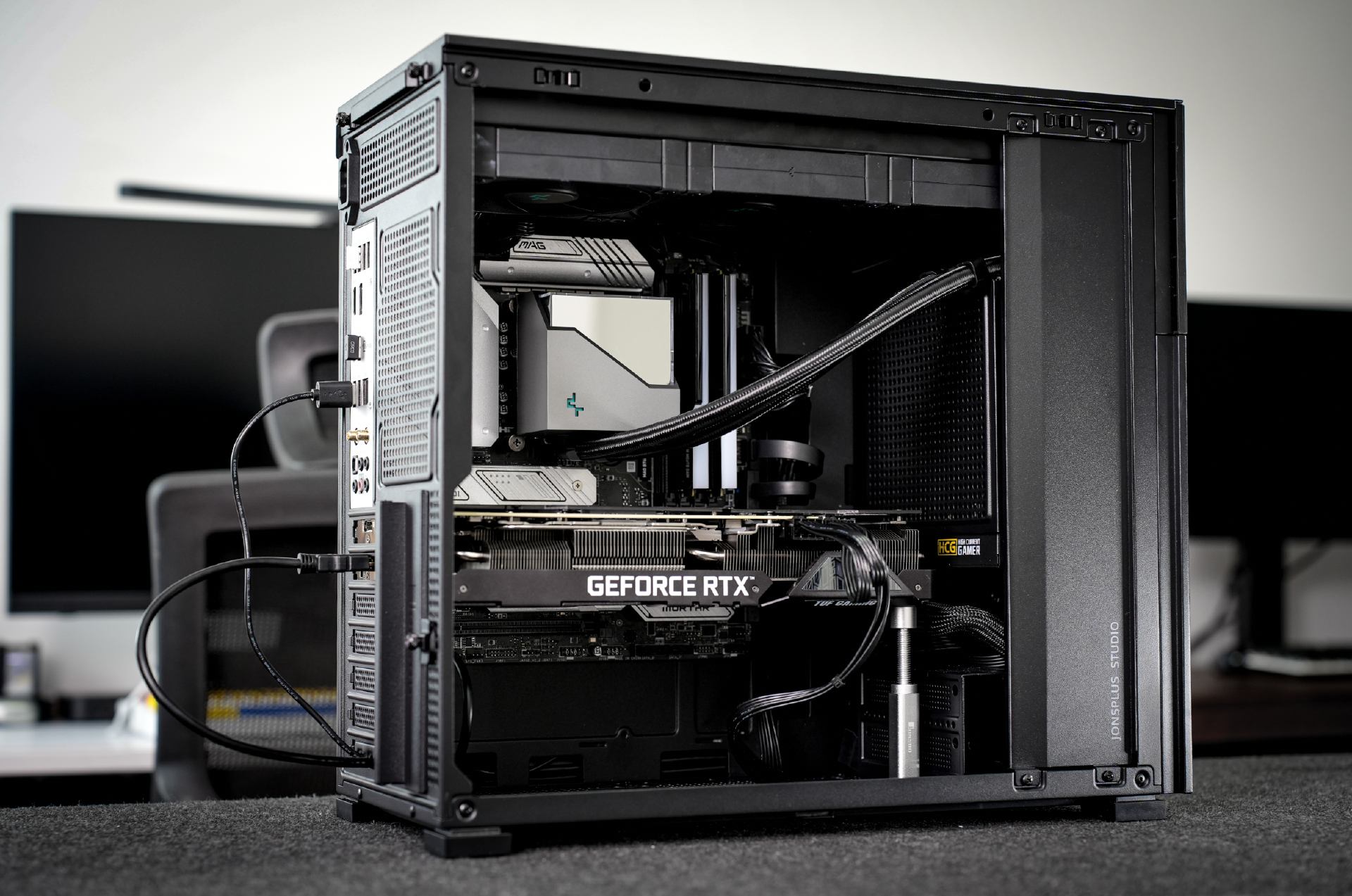 装机实测下来,发现可玩性确实强。同时,该机箱的内部空间也合理,虽然是电源前置的设计,但可以装入ATX大主板和360水冷,且还有独立的机械硬盘位。