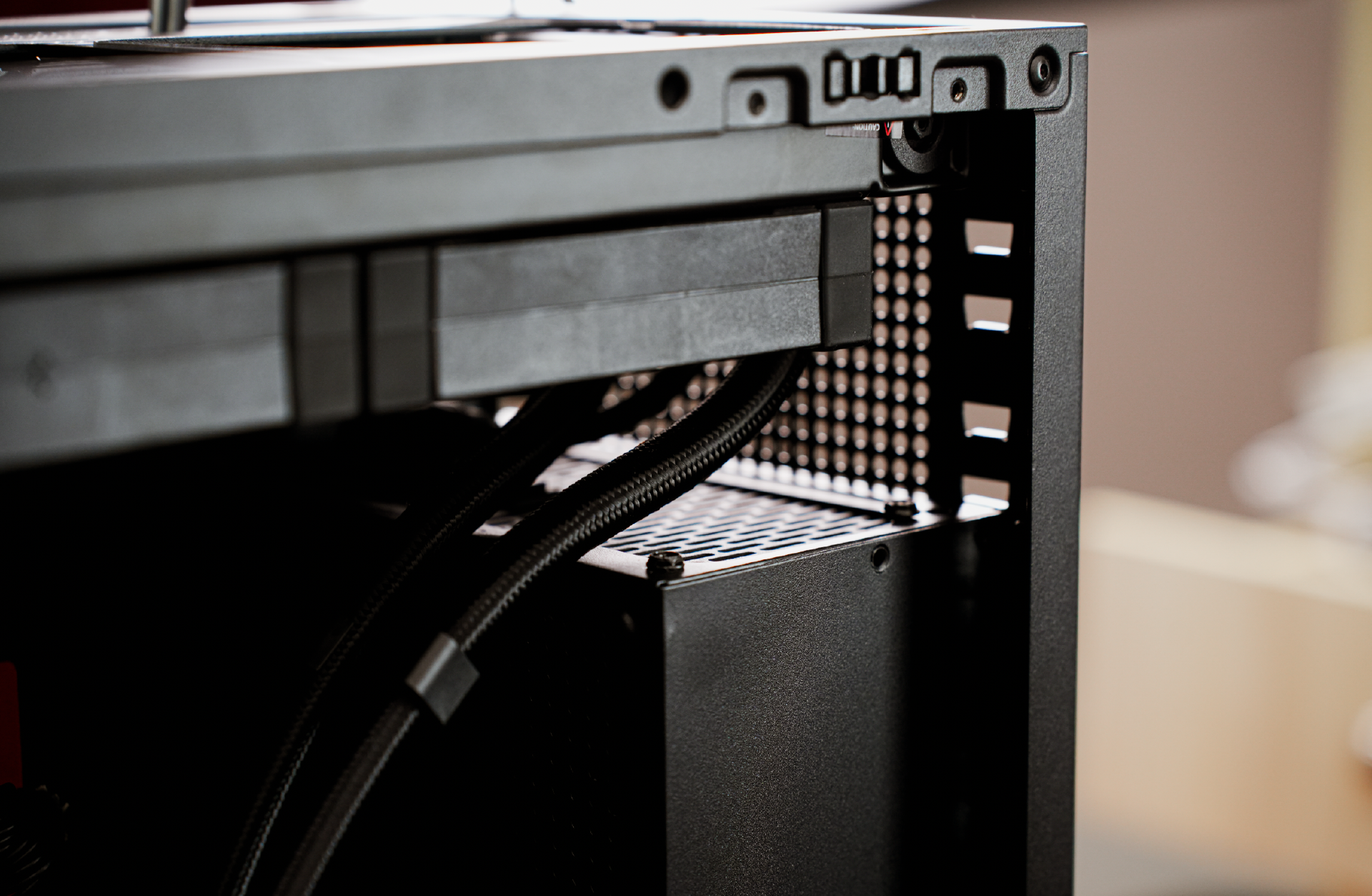 D41至少可支持18cm长款电源,同时电源仓还有4个档位,可以更主动的调整硬件的兼容性。比如向上调整可以让支持335mm长度的三槽显卡;向下调整更好的兼容360水冷。