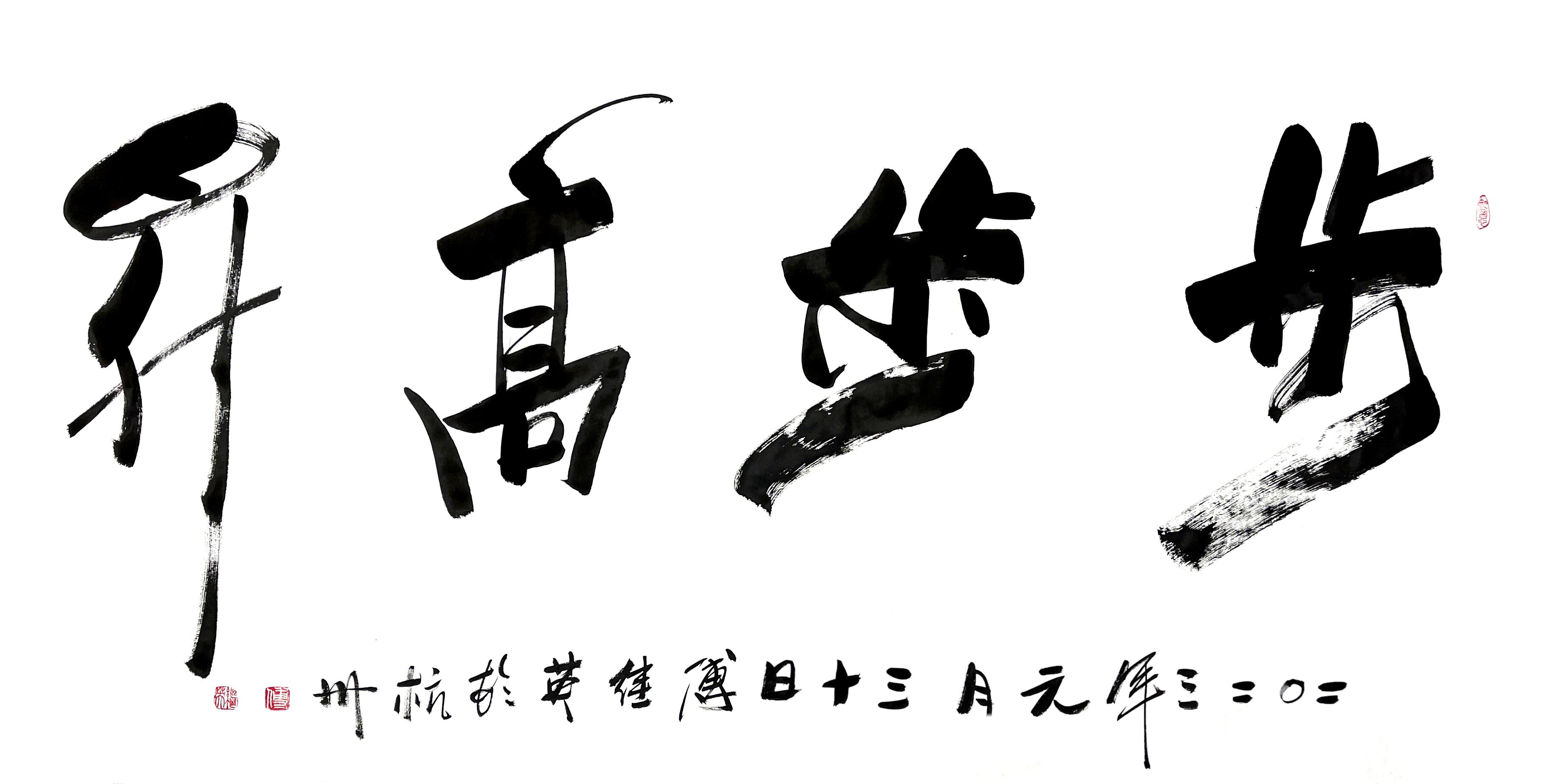 傅继英书法:步步高升。意思是指职位不断上升。人生有许许多多的挑战和机遇,在各种挑战面前,我们都要学会步步高升。只有不断地努力,才能收获成功。