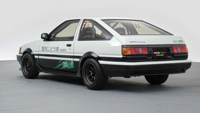 另一台Levin样式的AE86是一台BEV车型,车门涂装也印有EV字样,也就是说这是一台纯电动AE86。