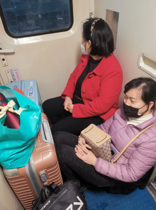 有了相互的陪伴,挤在车厢里的时光似乎也没有那么无聊。在刘赛花看来,这次坐绿皮火车也没有了以前的固有印象,车厢里没有难闻的味道,没有争吵的声音,只有人偶尔抱怨有旅客没有把卫生间冲干净。