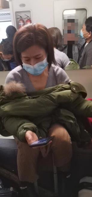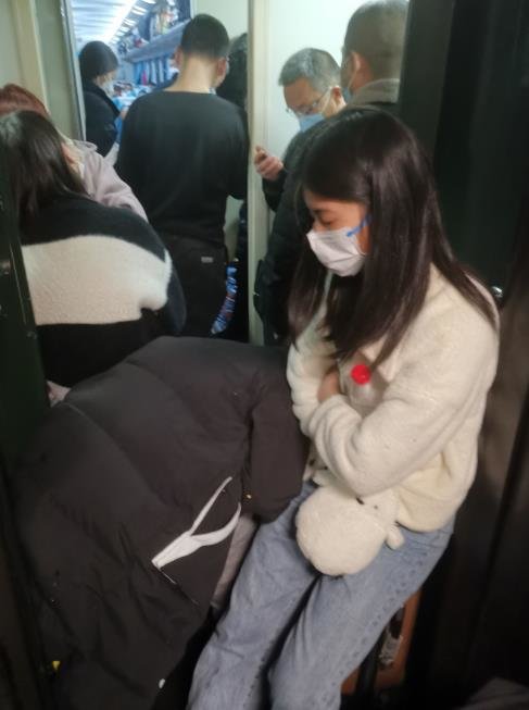范叶的无座票原本在2车厢,她就近选择了7车厢上车,但入口处等了好久才挤了上去。刚好碰到有旅客上车后补了卧铺票,她立马占到了座位。列车上早已经是人挤人的状态,车辆连接处也站满了人,还有旅客携带了便携座椅,要么就蜷在车辆尽头的窗口下,在行李袋上坐下。