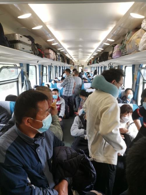 像范叶这样临时买票的不在少数,还有人在发车前两个小时抢到了坐票,计算了时间后匆匆赶到车站。很多人之前抢高铁票没有抢到,才被迫选择了坐绿皮火车。
