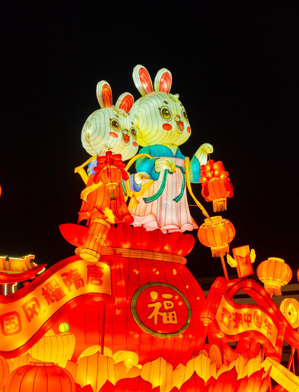 以御兔迎春为主线,活泼俏皮、憨厚可爱、国潮范儿十足的20多种风格迥异,各具形态的兔子灯分布在园区,活灵活现、栩栩如生增添节日里的童趣,与小朋友们共度佳节。