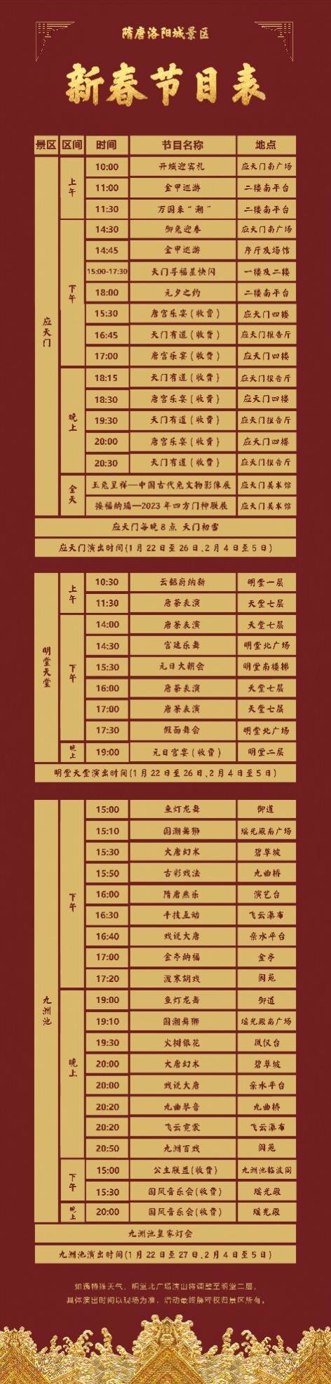 除此之外,隋唐洛阳城景区还准备了更多精彩的新春节目,详见演出表