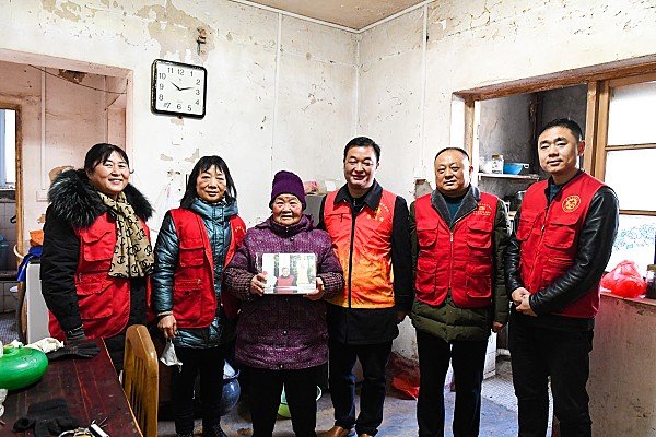 在宋奶奶家,志愿者们与宋奶奶聊天、话家常,老人抚摸着制作精美的照片,脸上笑出了温暖和幸福。宋奶奶非常感谢志愿者们来看她,离开时,宋奶奶不断向大家挥手道别。((文图/李磊)