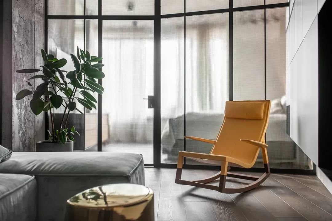 ▲长虹玻璃门,门外就是黄色的休闲沙发椅与绿植,让清新俏皮的气息微微带入卧室,让休息的卧室空间更加具有生机与舒适气息。