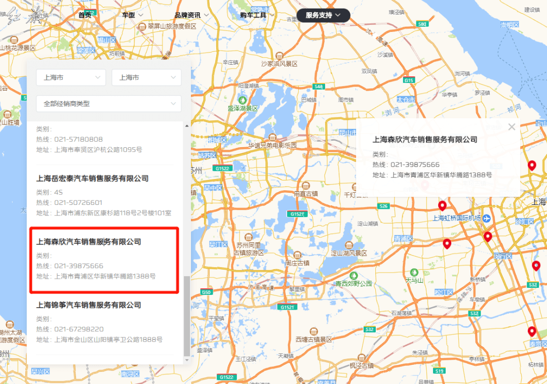 然而,《消费者报道》在一汽红旗官方网站查询发现,上海森欣红旗4S店的信息仍然在经销商页面存在。