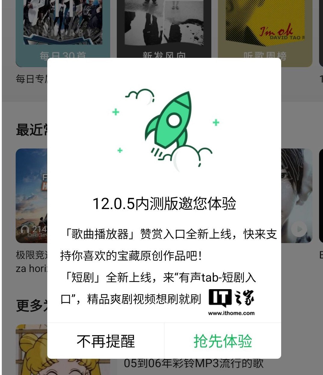 IT之家 1 月 18 日消息,据IT之家网友投稿,QQ 音乐手机 App 在推出 12.0 大版本后,目前正在内测 12.0.5 版本,新增刷“短剧”功能。