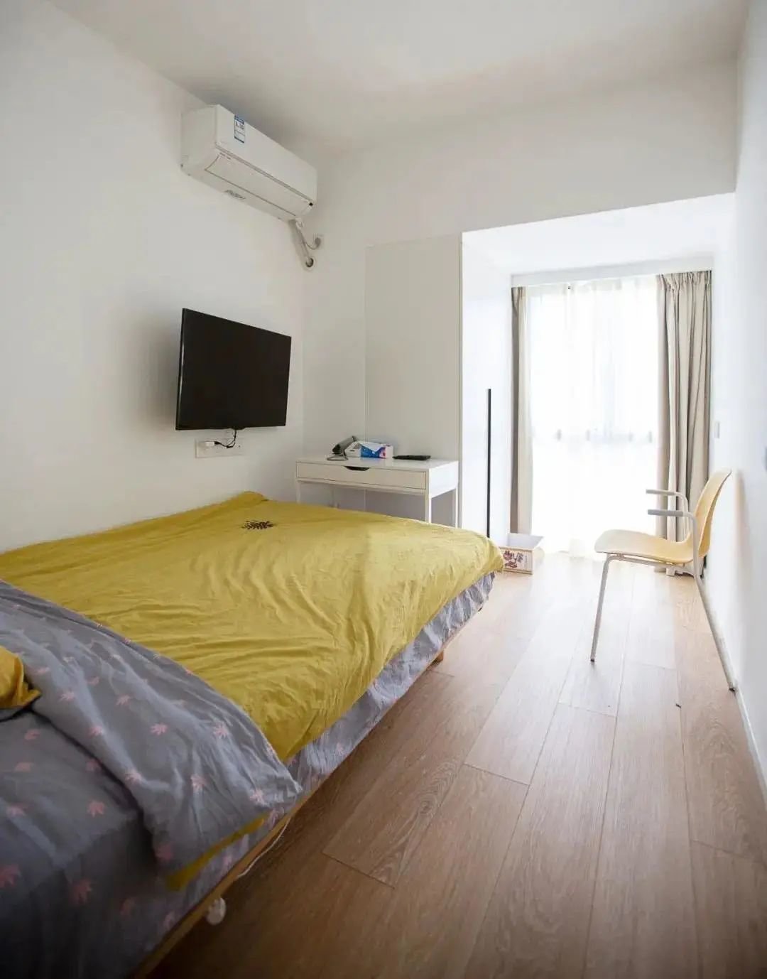 次卧空间不大,整体设计以简洁明快为主,兼顾采光和实用功能性。