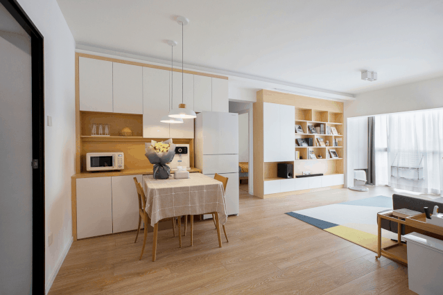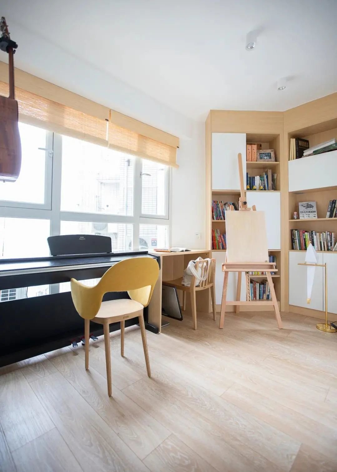 一整面落地窗增加采光,原木拼色设计,清爽舒适。