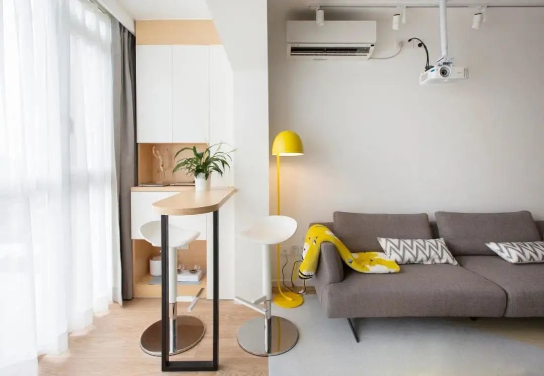 阳台设置了一个小的吧台,下午可以在这里看书写作,夜晚小酌一杯,十分惬意自在。