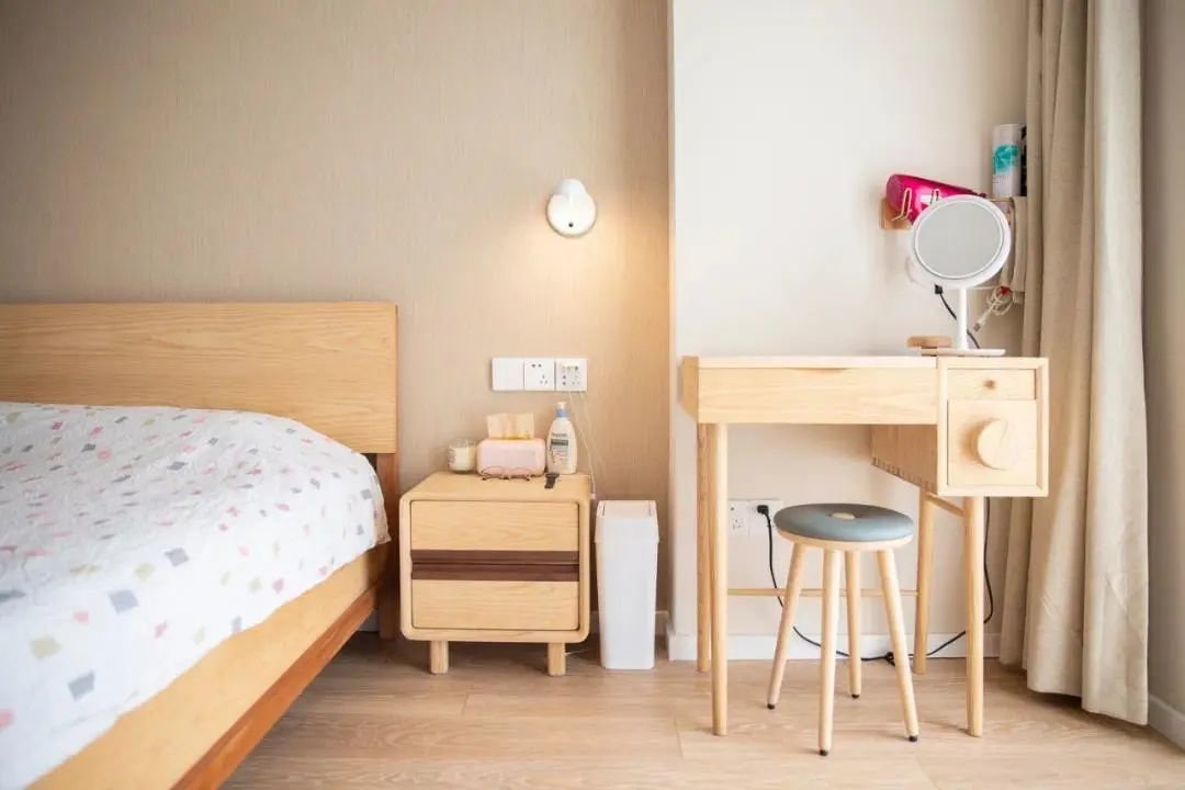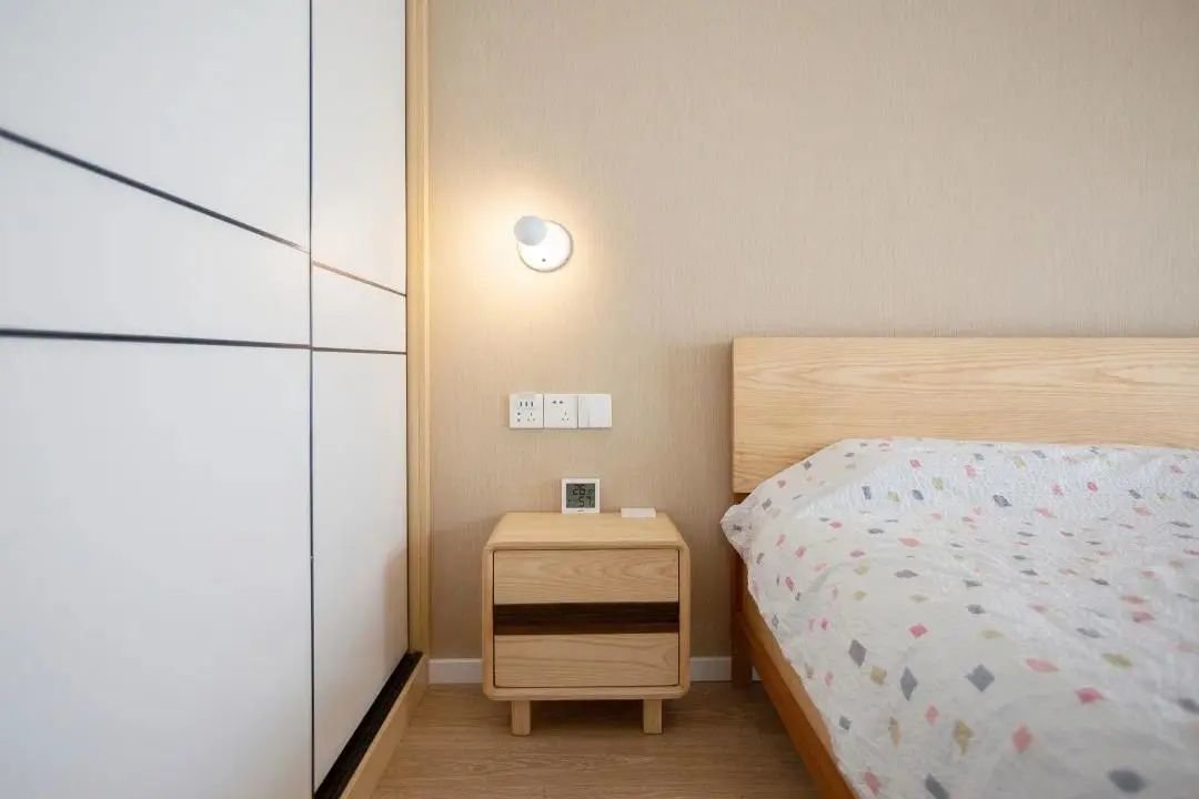 主卧以暖白色调为主,搭配原木组合家具,素净自然、淡雅而不单调。
